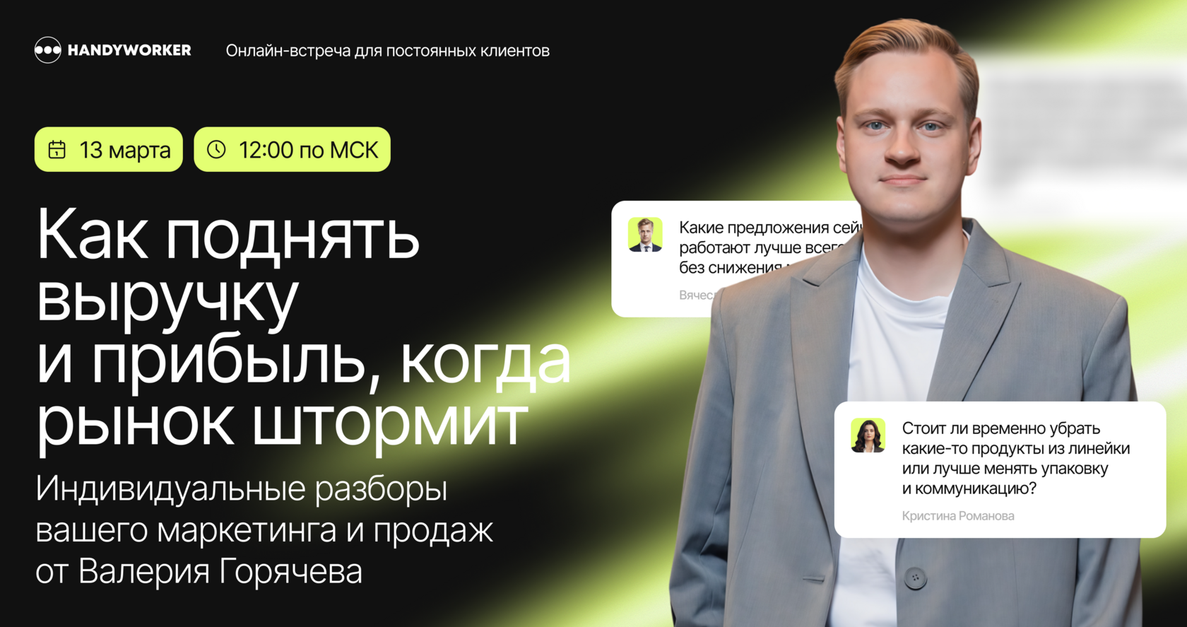 Друзья, живые разборы маркетинга и продаж от Валерия Горячева: «Как поднять выручку и прибыль, когда рынок штормит, через маркетинг и продажи» начинаются через 15 минут🚀