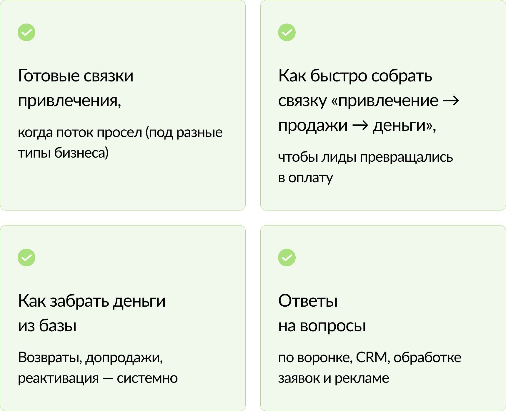 | Частая ситуация у собственников: заявки вроде идут, маркетинг «запускает рекламу», менеджеры «работают», но выручка не растёт или даже падает. Обычно причина в том, что не собрана связка: откуда берём клиентов → что предлагаем → как доводим до оплаты. | | | | Типовые поломки, которые мы видим в разборе воронок: | | | | Чтобы дать большему количеству владельцев возможность забрать рабочие связки и инструменты, Валерий Горячев проводит большой практический интенсив «Пересборка продаж в кризис: как выстроить маркетинг и продажи, чтобы росла выручка и прибыль». | | | | Зарегистрироваться можно по кнопке ниже, вам придёт напоминание в SMS и на почту: | | | Система быстрого найма и адаптации и снижения текучки, что уменьшит операционку и повысит прибыль ( info@handy-worker.com) © Copyright 2026 Handy Worker. Все права защищены. | | | |