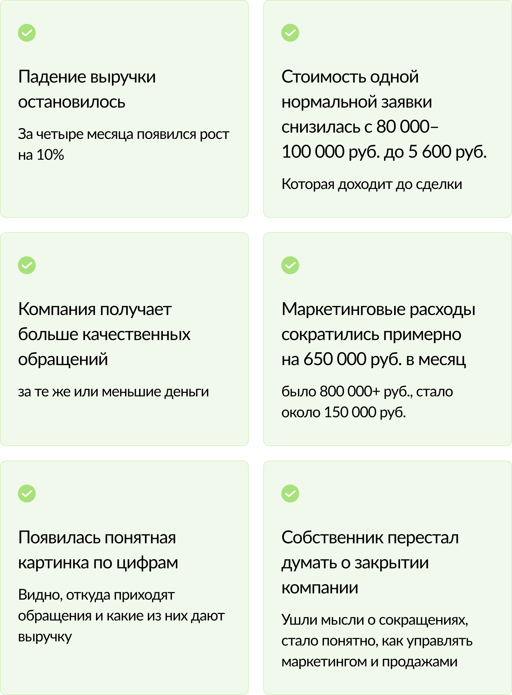 К нам пришёл Алексей Манушин, собственник «Скиф Сервис» (продажа компрессорного оборудования, Тверь). | | | | На входе ситуация была жёсткая: | | | | Продажи просели почти в два раза по сравнению с 2024 годом. При этом на маркетинг уходило около 850 000 руб. в месяц: внешний подрядчик ≈300 000 руб./мес за ведение и ещё 500 000−700 000 руб./мес на рекламу. | | | | По отчётам всё выглядело «красиво» | | | | 15−20 заявок в неделю, «хорошая» цена заявки ~9 000 руб. Но новые клиенты с рекламы почти не доходили до покупки — даже несмотря на CRM, скрипты и базовую воронку. Внутри не было понятной картины по цифрам: видели только общее количество заявок и общие продажи, без разреза по каналам и качеству обращений. На фоне падения выручки у собственника появились мысли о сокращениях и даже возможном закрытии компании. | | | | Мы начали не с настроек рекламы | | | | Первый шаг в таких проектах — разобраться, кто действительно приносит деньги и за что вам платят. Мы собрали цифры, разложили обращения по источникам и качеству, определили, какие заявки реально доходят до сделки, и выстроили управляемость: чтобы владелец видел, что происходит в маркетинге и продажах, и мог этим управлять, а не «верить отчётам». | | | | Что получили после проекта | | | Подробнее прочитать, что было сделано можно на сайте. | | | Система быстрого найма и адаптации и снижения текучки, что уменьшит операционку и повысит прибыль ( info@handy-worker.com) © Copyright 2026 Handy Worker. Все права защищены. | | | |