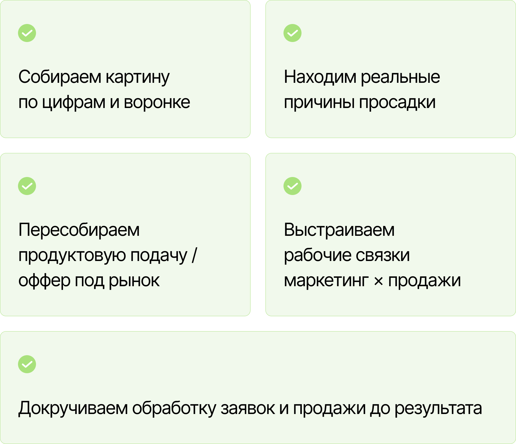 | Кому-то в первую очередь нужно перепрошить сайт, оффер и трафик, потому что рынок изменился, а упаковка осталась прежней. Кому-то — выстроить сам отдел продаж: нанять РОПа, усилить команду, поставить процесс. Кому-то — внедрить CRM, скрипты, мотивацию и дисциплину, потому что заявки просто теряются внутри.