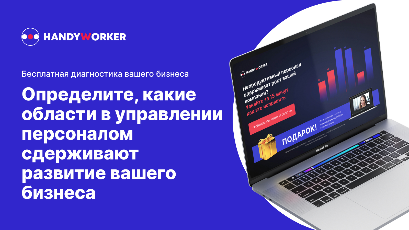Пройдите уникальную диагностику бизнеса всего за 15 минут. | | | | Диагностика покажет проблемные области вашей компании | | | | | | | Увидите, что тормозит развитие вашей компании и откуда берется хаос в работе. | | | | | | | | Поймете, кто ворует ваше драгоценное время и почему сотрудники совершают ошибки. | | | | | | | | Определитесь с конкретными действиями для создания продуктивной команды. | | | | | Вы сразу получите подробную расшифровку результатов | | | | По результатам тестирования вы получите описание состояния области и краткие рекомендации по тому, как устранить неоптимальности или усилить область, которая функционирует хорошо. | | | | Получите индивидуальный разбор с экспертом в подарок | | | | Позвоните нам, если у вас остались вопросы! 8 (800) 302-84-04 | | | | | | Вы можете отписаться от рассылки в любое время, пройдя по ссылке. | | | © Copyright 2021 Handy Worker. Все права защищены. | | | |