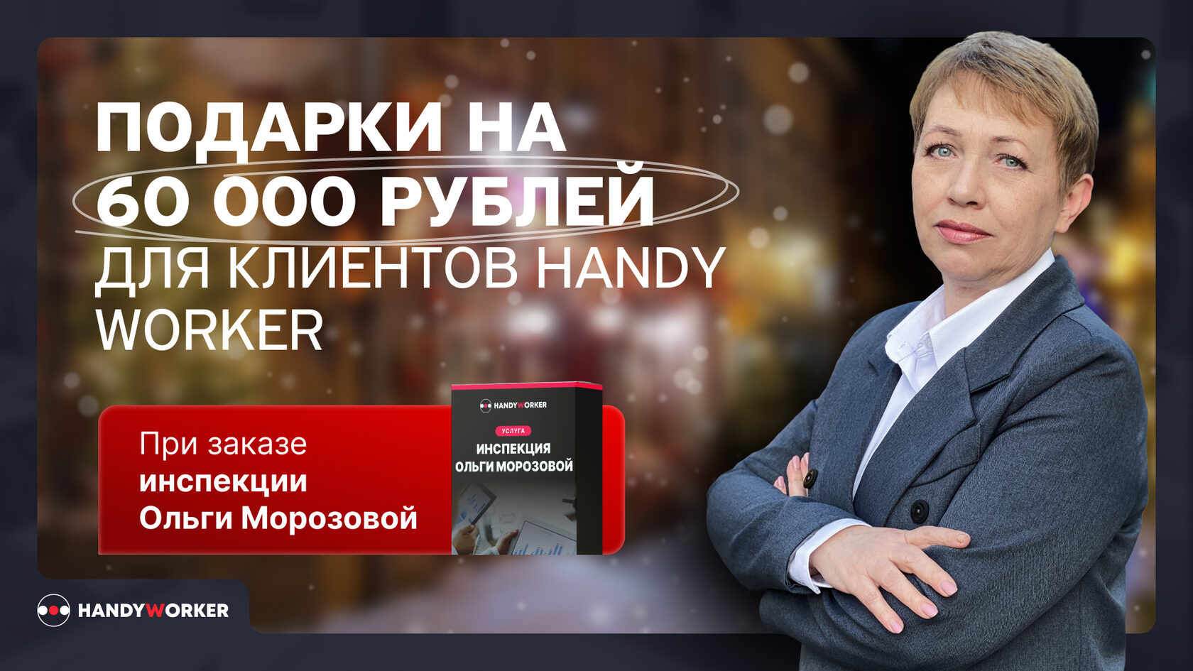 Handy Worker и партнеры подготовили новогодние подарки на сумму 60 000 рублей для наших клиентов, заказавших инспекцию Ольги Морозовой!Инспекция покажет факторы, влияющие на приток сильных кандидатов в компанию и причины снижения эффективности текущей команды. Ольга Морозова — эксперт по эффективности персонала с опытом более 20 лет. Административный директор Handy Worker. - Управляла HR-департаментом филиала международной компании в России со штатом 250 сотрудников.
