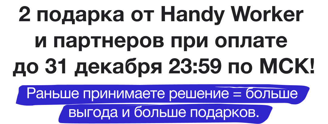 | | | Для того чтобы ускорить рост вашей компании, мы подготовили 2 подарка, которые можно получить, заказав инспекцию департамента персонала. С каждым днем подарков остается все меньше. Самые быстрые собирают все «сливки». Совсем как в бизнесе. Оставляйте заявку по ссылке, чтобы забронировать подарки и узнать подробности об инспекции. | | | | Позвоните нам, если у вас остались вопросы! 8 (800) 302-84-04 | | | | | Вы можете отписаться от рассылки в любое время, пройдя по ссылке. | | | © Copyright 2022 Handy Worker. Все права защищены. | | | |