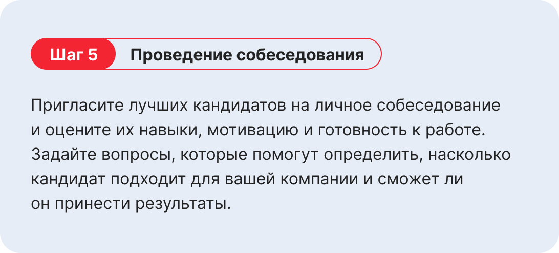 Один из ключевых аспектов этого процесса — правильный подбор персонала. Сегодня хотим поделиться с вами пятью простыми шагами, которые помогут вам нанять сотрудника, способного принести результат вашей компании. |