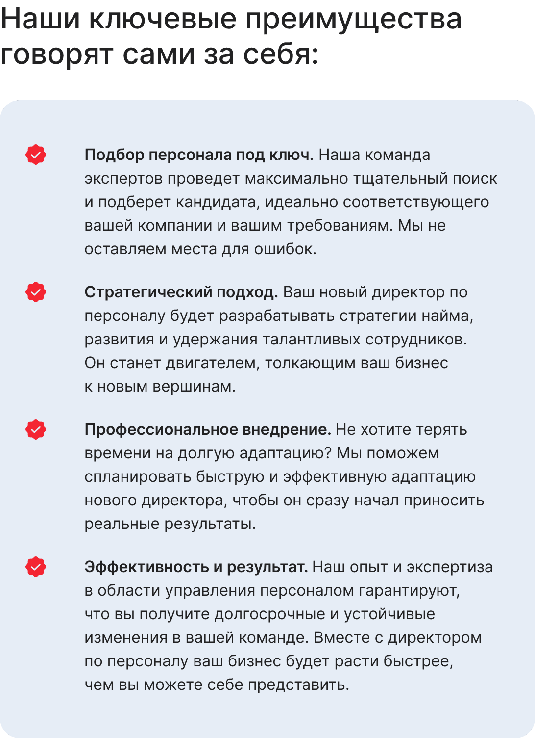Вы знаете, что успех вашей компании зависит от качества вашей команды. И нет ничего более важного, чем правильное управление персоналом. Вот почему нам не терпится предложить вам уникальную возможность получить идеального директора по персоналу, который перевернет ваш бизнес и поможет ему достичь новых высот. |