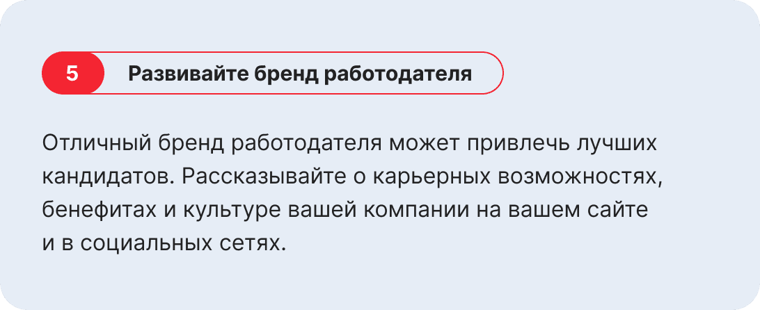 | Мы знаем, что привлечение идеальных кандидатов может быть сложной задачей, но оно является фундаментом успешного развития вашей компании. Сегодня мы хотим поделиться с вами подробной информацией о 9 принципах, которые помогут вам найти и привлечь лучших сотрудников: |