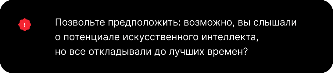 Мы предлагаем проверенные решения специально для малого и среднего бизнеса. И угадайте что? Нужно единожды запустить и наслаждаться результатом — без бесконечных внедрений. Забудьте о написании внутренних документов — ИИ возьмет это и многое другое на себя.