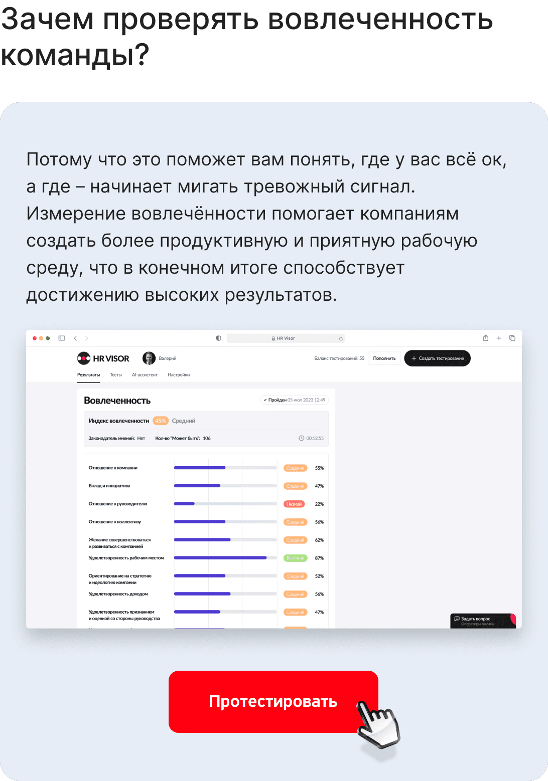 Есть простой способ разобраться, почему сотрудники уходят и как это исправить – тест на вовлеченность от