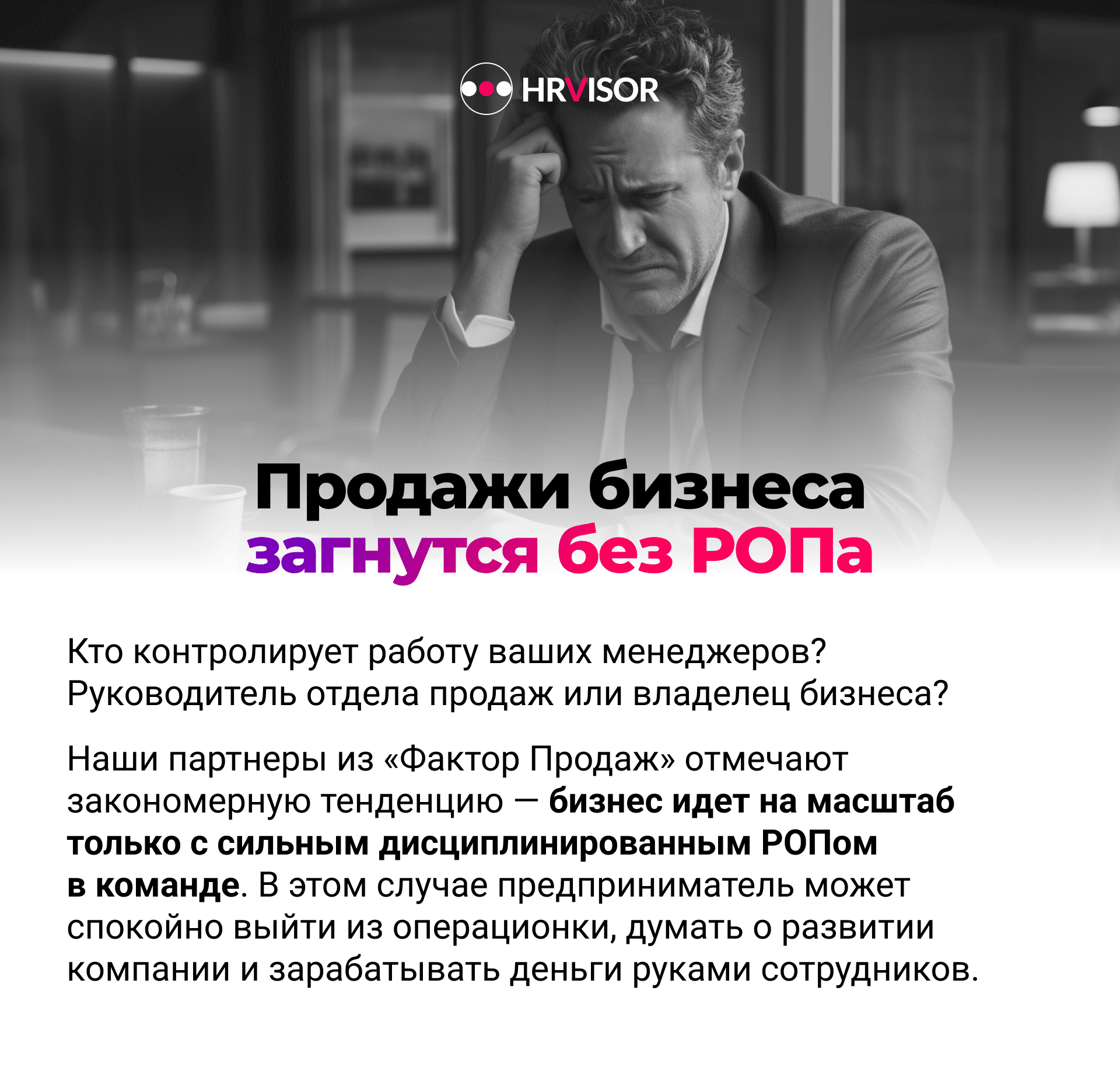 Кто контролирует работу ваших менеджеров? Руководитель отдела продаж или владелец бизнеса? Наши партнеры из «Фактор Продаж» отмечают закономерную тенденцию – бизнес идет на масштаб только с сильным дисциплинированным РОПом в команде.