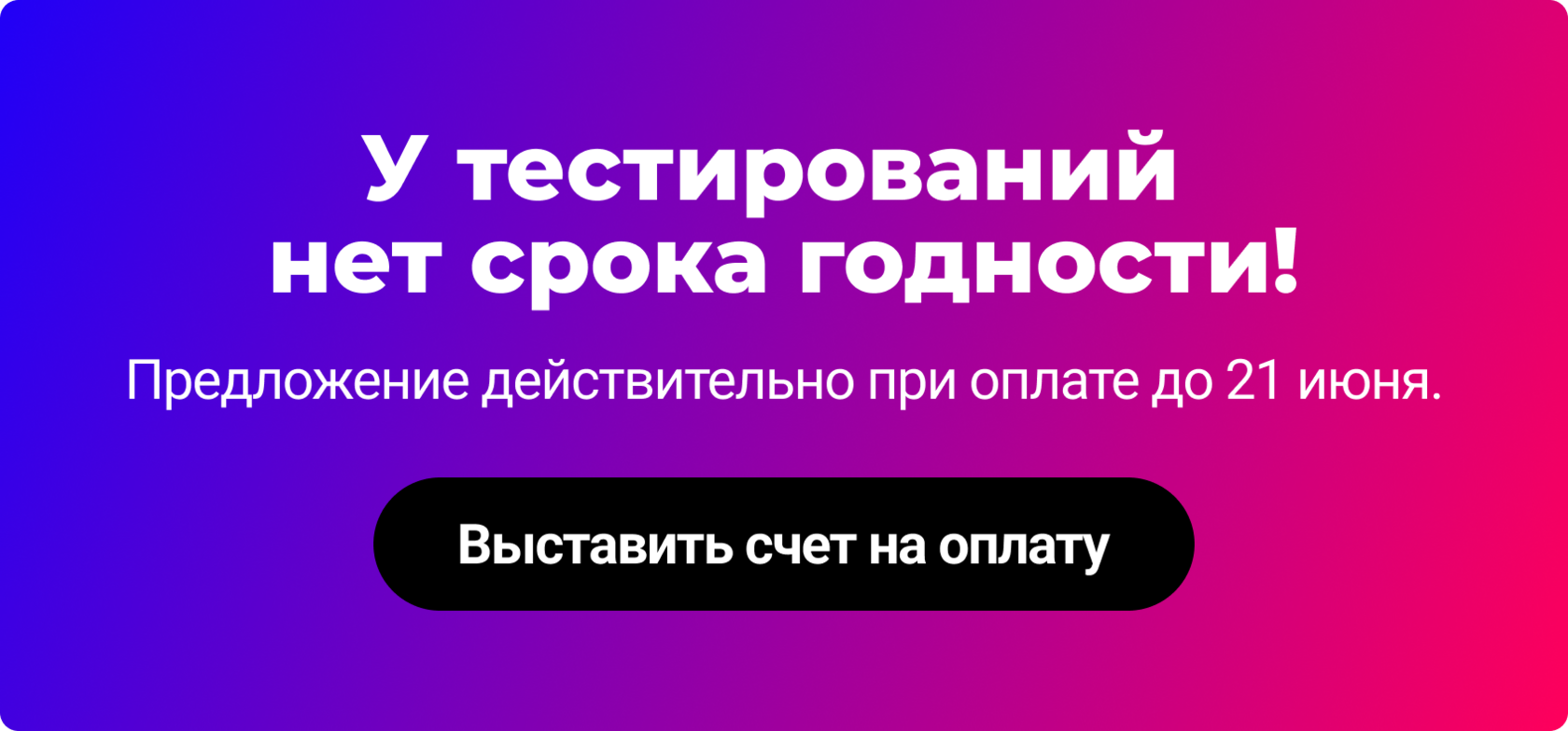 Спешим сообщить вам, что сейчас у нас проходит АКЦИЯ: удваиваем любой пакет тестирований при покупке до 21 июня! 🔥