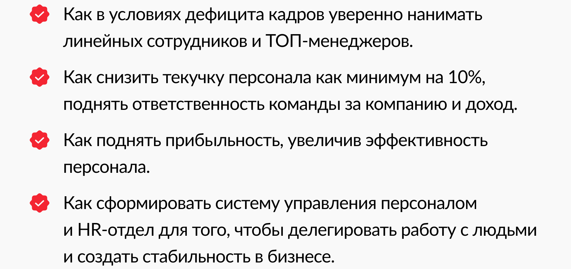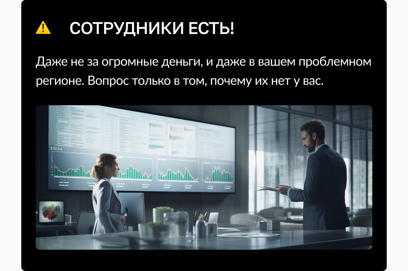 | Закрытая встреча для владельцев бизнеса | | | | «Увеличьте прибыль, решив 3 главные проблемы: дефицит кадров, текучка персонала и эффективность труда» 23 октября 16:00 по МСК | | | | Хотите расширения, роста компании, но каждый раз упираетесь в проблему нехватки сотрудников. То приходят бестолочи, то вот он, нормальный человек, да, без опыта, но ничего, обучим. Проходит месяц, два, вкладываются силы, но итог один: заявление на стол. И так последние 2 года, а то и дольше…