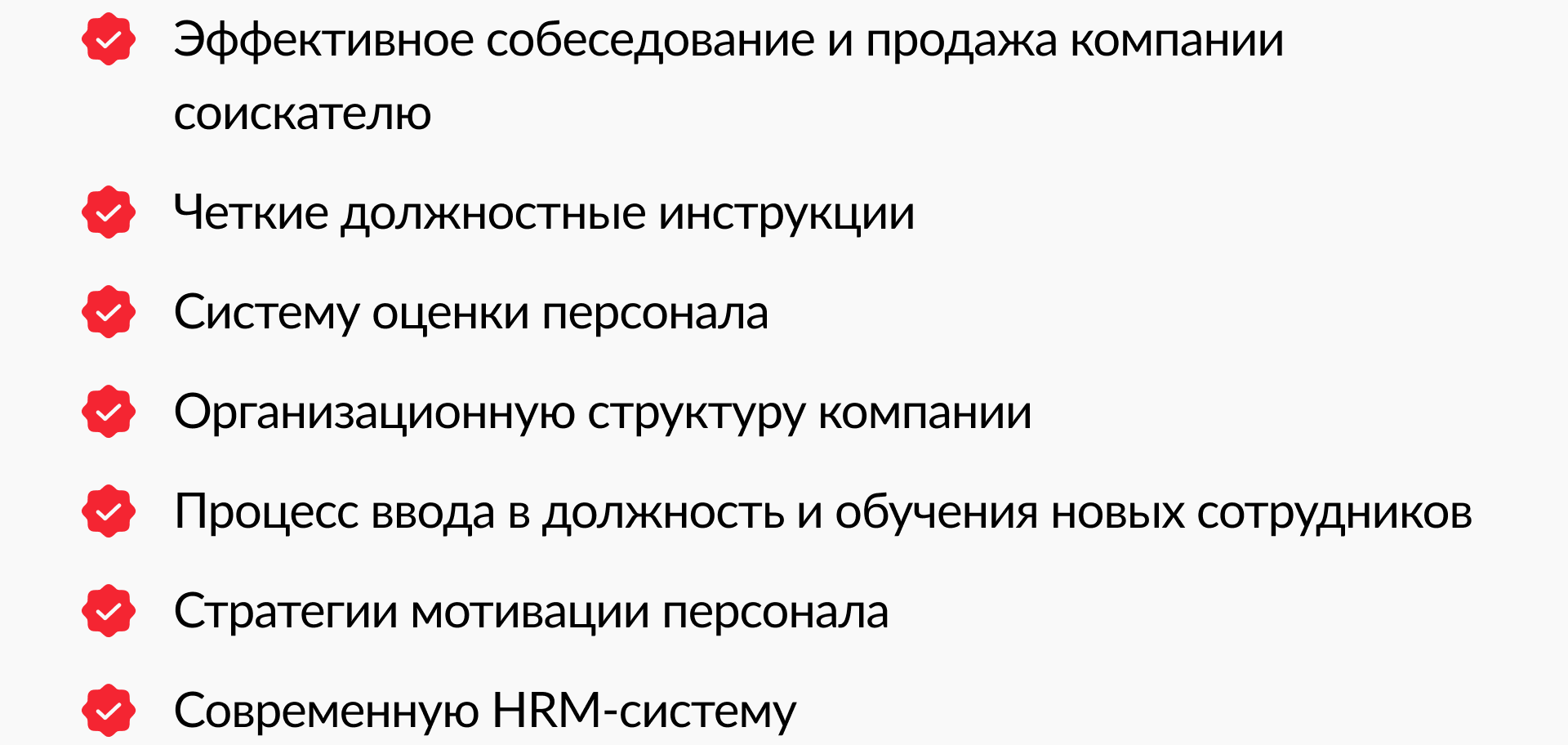 | Закрытая онлайн-экскурсия в идеальный HR-отдел | | | | Чтобы построить идеальный HR-отдел, нужно увидеть его в действии. Мы приглашаем вас на онлайн-экскурсию в наш HR-отдел Handy Worker — модель, по которой мы создаем HR-системы для наших клиентов. | | | | На экскурсии вы увидите ключевые инструменты управления персоналом: | | | | И, конечно, мы ответим на все ваши вопросы.
