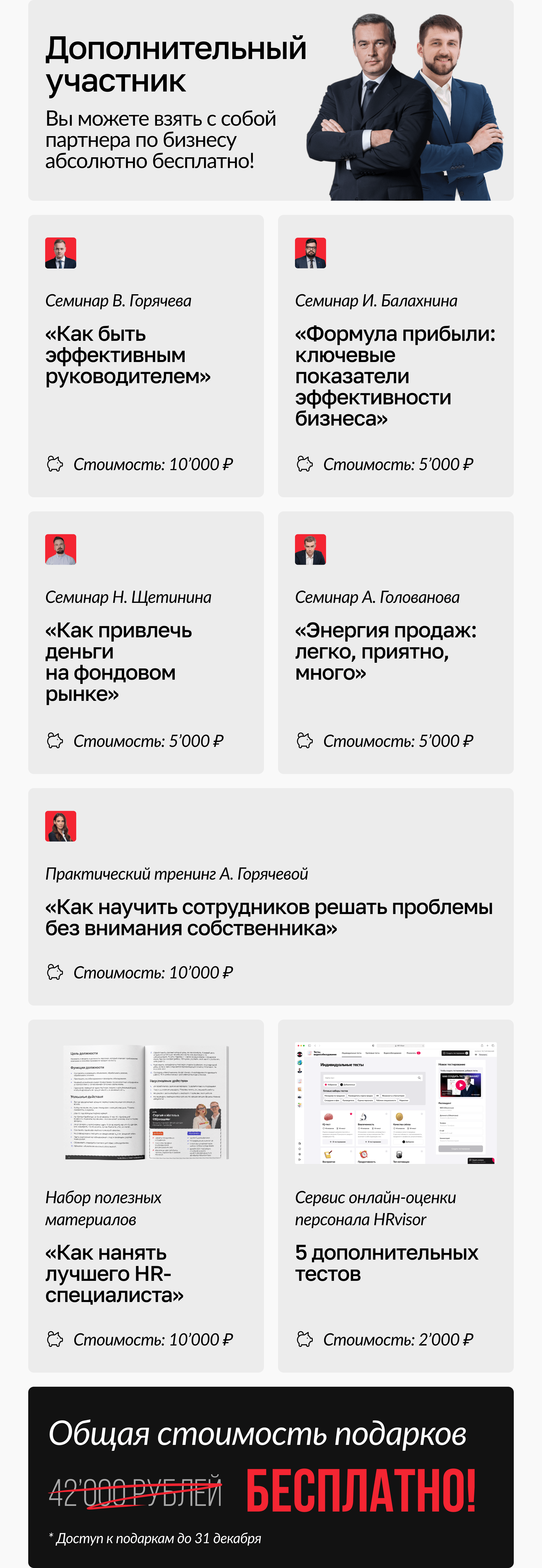 | {first_name}, с 5 по 18 ноября 2024 года у вас есть уникальная возможность не только стать участником нашего онлайн-практикума, но и получить невероятные подарки! | | | | Онлайн-практикум «Прибыльные сотрудники» для владельцев бизнеса, которые хотят знать, как сделать бизнес устойчивым и эффективным, и выйти из операционки! | | | | Вы научитесь создавать продуктивную команду за 4 дня по авторской технологии. | | | | Никаких долгих нудных уроков и теории — только конкретные технологии, которые нужно внедрить и сразу получить результат. | | | | Чтобы стать обладателем ценных подарков, выполните два простых условия: | | | - Оплатите участие в онлайн-практикуме с 5 по 18 ноября.