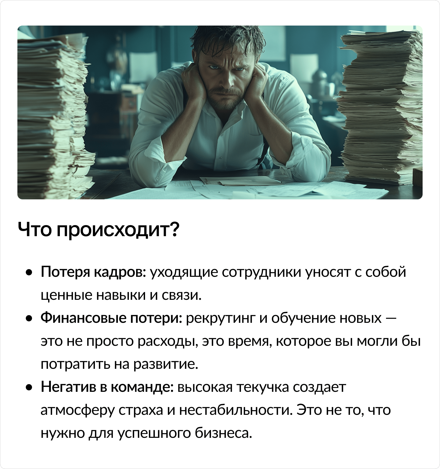 Текучка персонала и конфликты в команде — это не просто неприятности, это настоящая катастрофа для бизнеса.