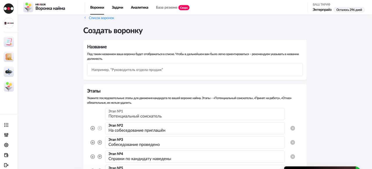 Настраивайте воронку так, как вам удобно, и создавайте эффективную систему найма!