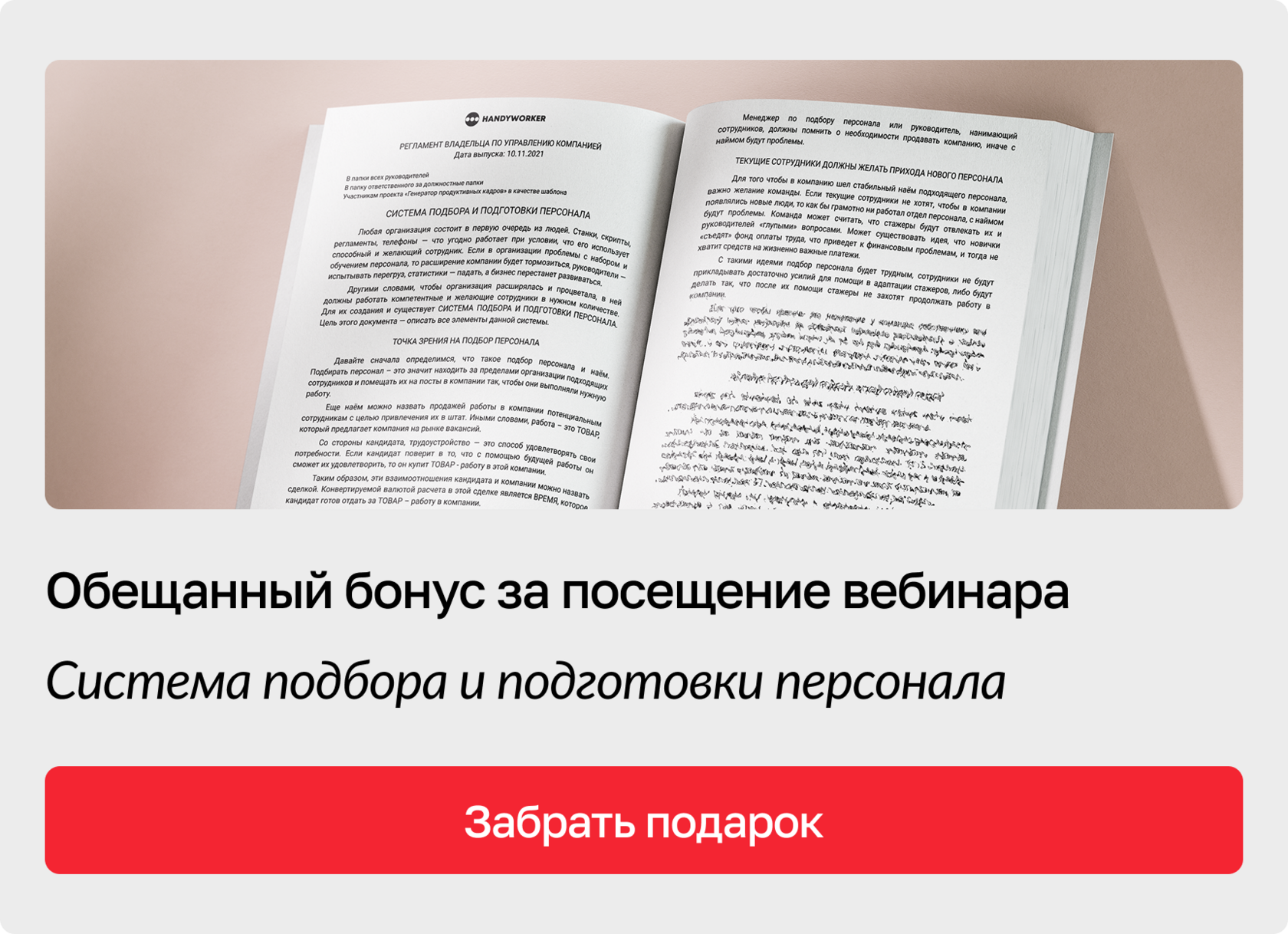 Теперь вы знаете, что владелец бизнеса должен владеть инструментами и навыками для создания мощной команды. И мы готовы показать вам все секреты эффективной работы с персоналом на закрытой онлайн-экскурсии в HR-отдел Handy Worker.