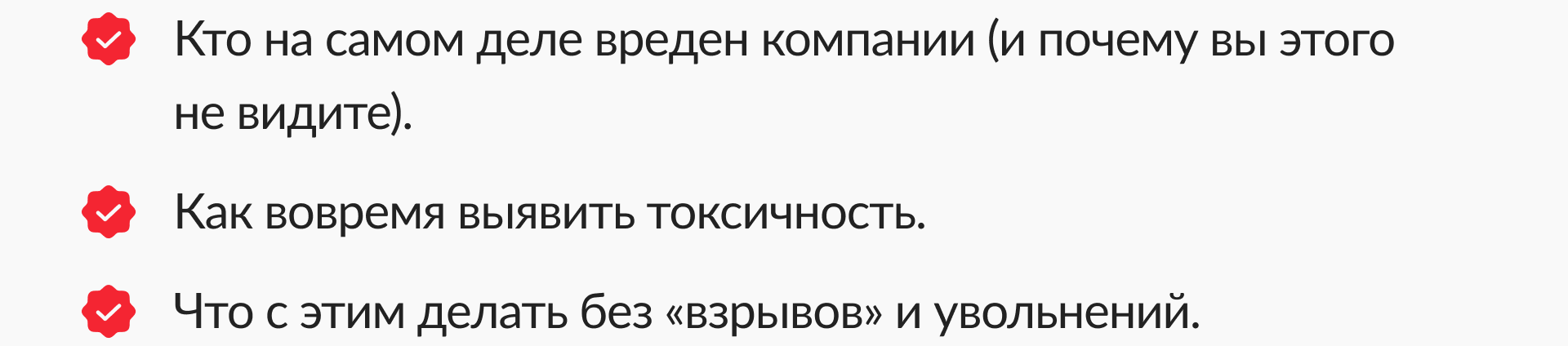| {first_name}, вы замечали: часть команды действительно бьётся за результат, а другая… просто отрабатывает часы? А хуже — саботирует нововведения, сплетничает, провоцирует конфликты и разлагает атмосферу.