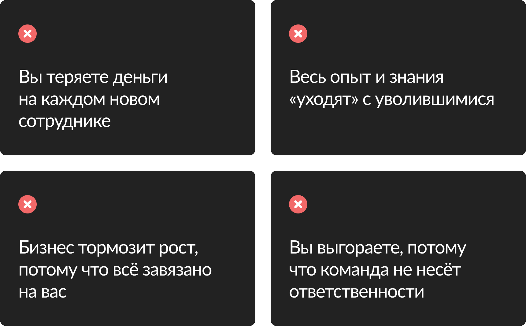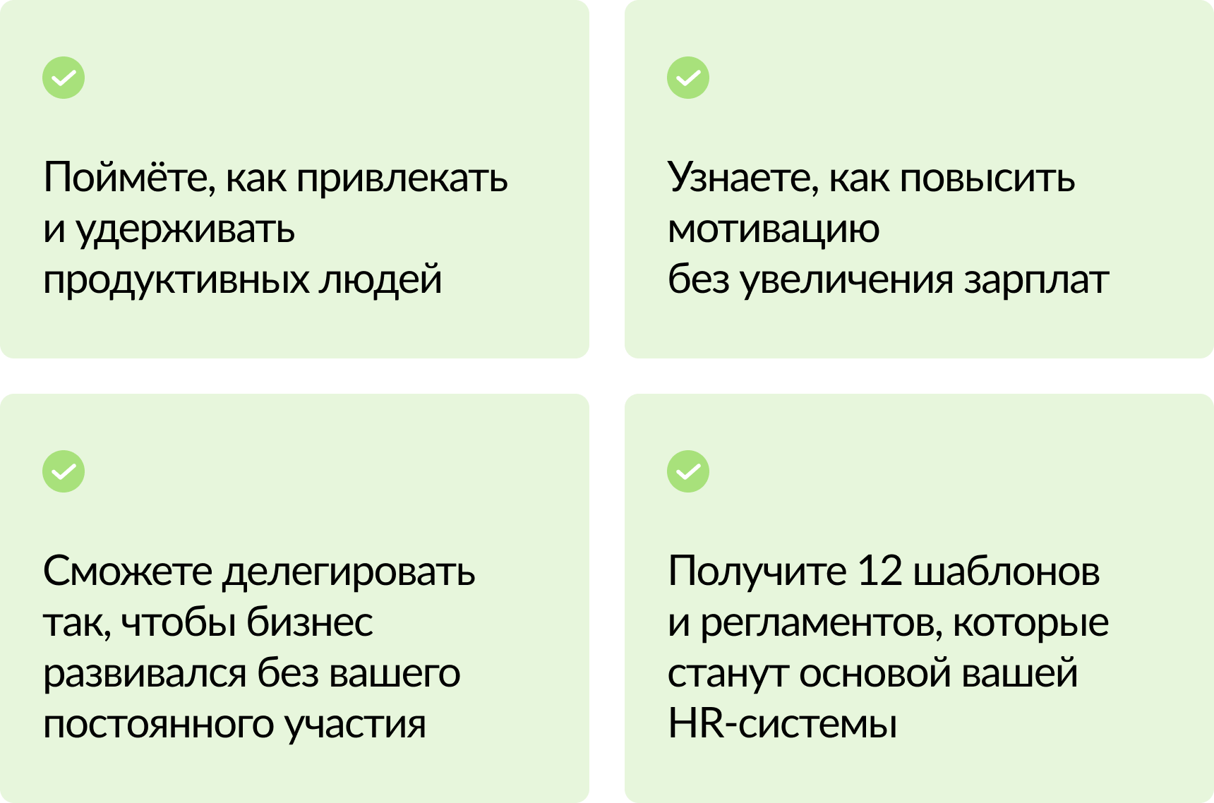 | Значит, в вашем бизнесе нет системы работы с персоналом. | | | У наших партнеров, Handy Worker, есть решение — онлайн-практикум «Прибыльные сотрудники», который помогает собственникам выстроить HR-функцию, снять с себя ручное управление и растить бизнес через сильную команду. | | | | А ещё — протестируете 10 сотрудников на IQ, вовлечённость и личные качества на платформе HRvisor.