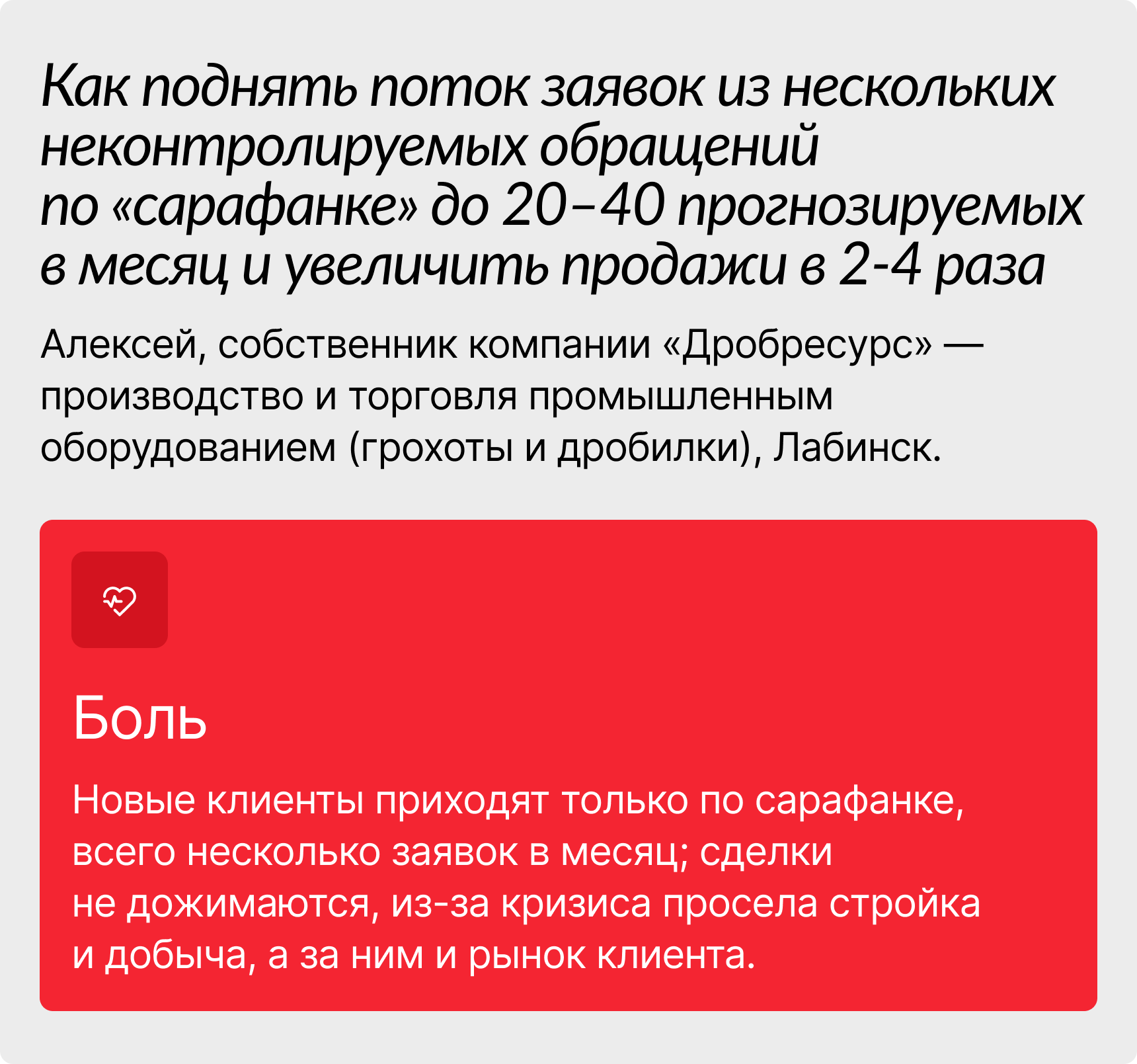 Мы будем делиться частью разборов с вами. Запись первого разбора будет полезна всем, кто работает в B2B и продаёт оборудование, оказывает сервисные услуги или реализует расходники. |
